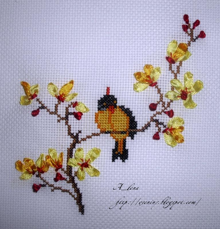 Эту работу я вышивала в совместном проекте "Пернатая радуга", который проходил в Nostromo Club.