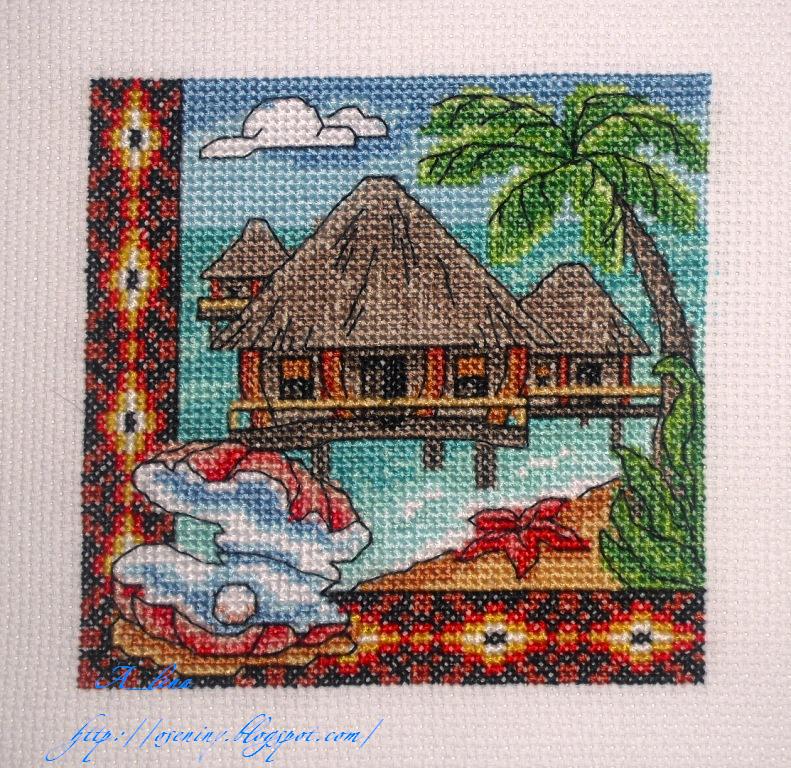 Вышивка ещё никак не оформлена, только сегодня закончила. Думаю что-нибудь полезное сделать. Например,  альбом для фотографий, и возможно, они будут с острова в океане ;)  Помечтаю! :))