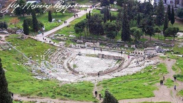 Театр Диониса находится в Акрополе. Это один из самых древних театров в мире. Он был построен ещё в V веке до н.э. Театральные представления в этом театре проходили только два раза в год, так было тогда заведено. На представления приходили даже римские императоры во времена, когда Афины входили в состав Священной Римской империи. Древнегреческий театр очень любил Нерон, один из самых могущественных римских императоров.