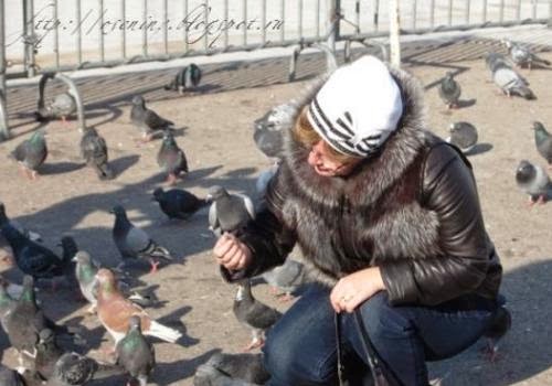Голуби на площади совсем ручные, сами подлетают