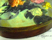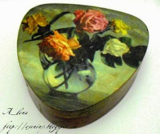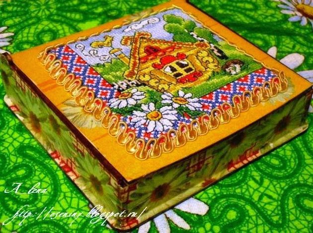 из папье-маше, размер 7,5х7х3 см. Коробочка декорирована в технике декупаж и